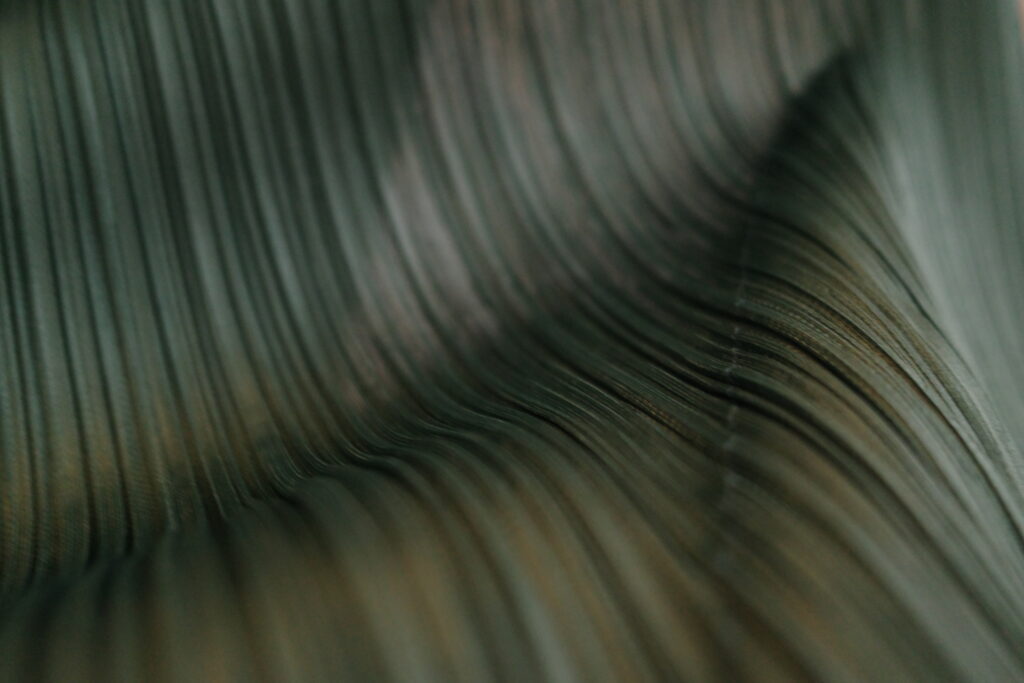 プリーツプリーズやイッセイミヤケのアイテムに合わせるインナーを選ぶときは、薄手で滑らか、生地感が柔らか、そして極力ラインが目立たないものがおすすめ。プリーツの美しさと動きを引き立てつつ、着心地もよくまとまりやすくするポイントです。